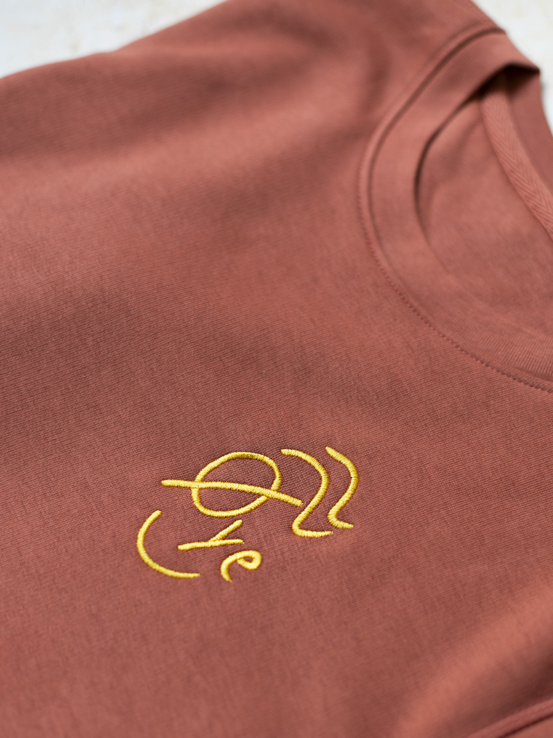 yellow embroidery on light Brown